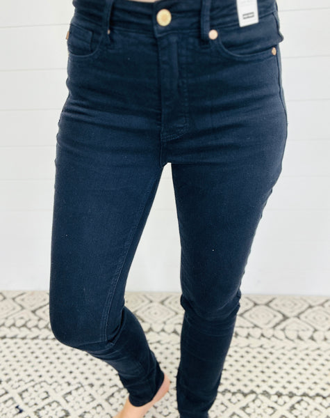 Introducing our Work-Appropriate High Waist Pants, designed with tummy control to suck you in and slim you out for a flattering fit. Featuring stylish copper button details, these pants come in a classic navy color and are true to your department store size.