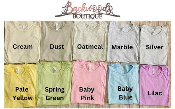 This design comes on a pink tee, if you would like another color please include the color in the notes section at checkout. (Cream and blue are also shown)