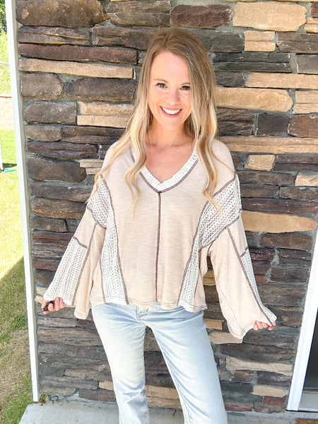 Tan Crochet- Mocha Stitching Top